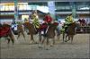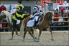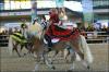 Quadrillie mit den Hengsten Stratus und Ali Baba (weiß), Nakuri und Amor (gelb), Saturn und Allgaier (rot)